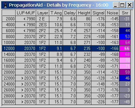 For users interested in learning more about ionospheric conditions, detailed propagation data is available. This data includes radio wave tackoff angle, ionospheric reflection layer and number of bounces. Several NTIA/ITS propagation models are available:
